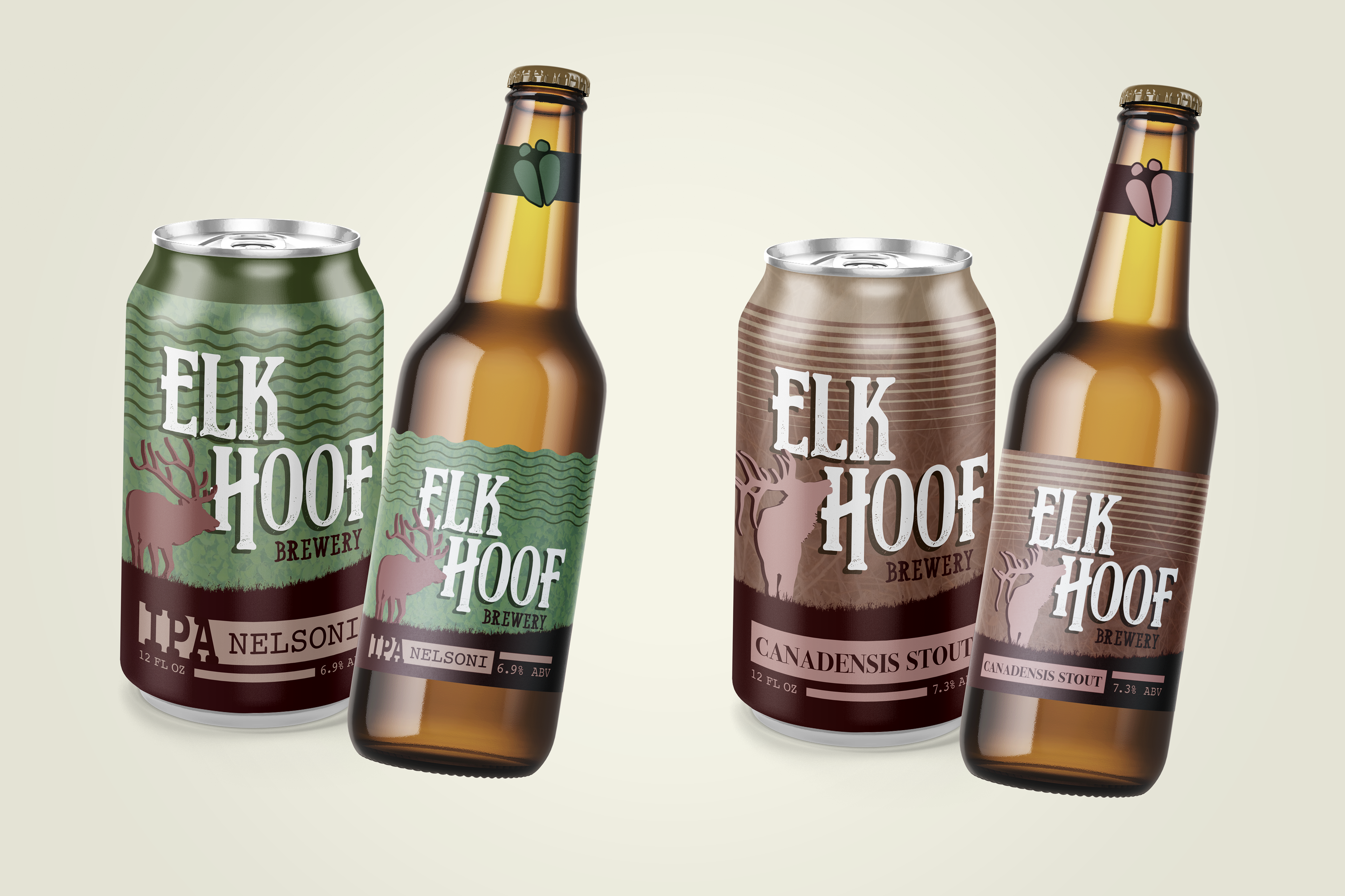 This was a school project done for my Portfolio Preparation Class in 2021. This was a self-directed project, so I decided to practice my packaging design and create a mock craft beer brand called Elk Hoof Brewery. The first step was creating the identity which I did in the process of designing the first bottle. The second bottle was an attempt to change the color palette but still have it relate structurally to the first bottle, solidifying the brand identity.